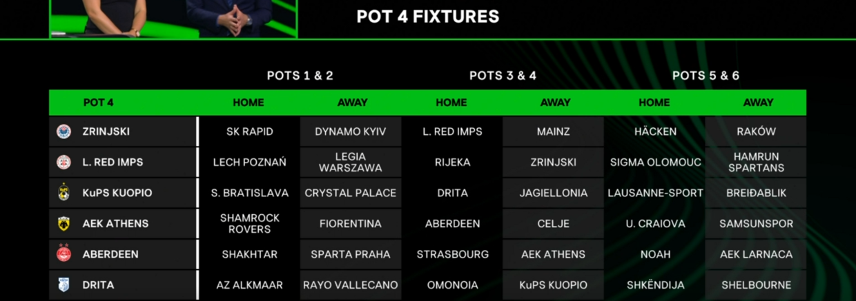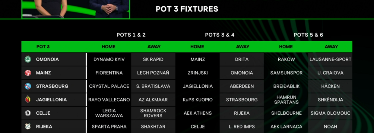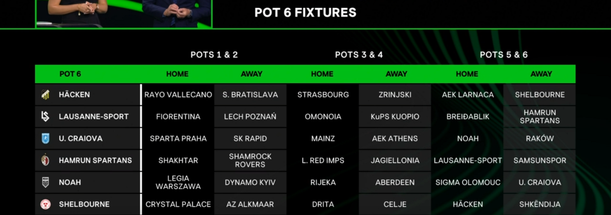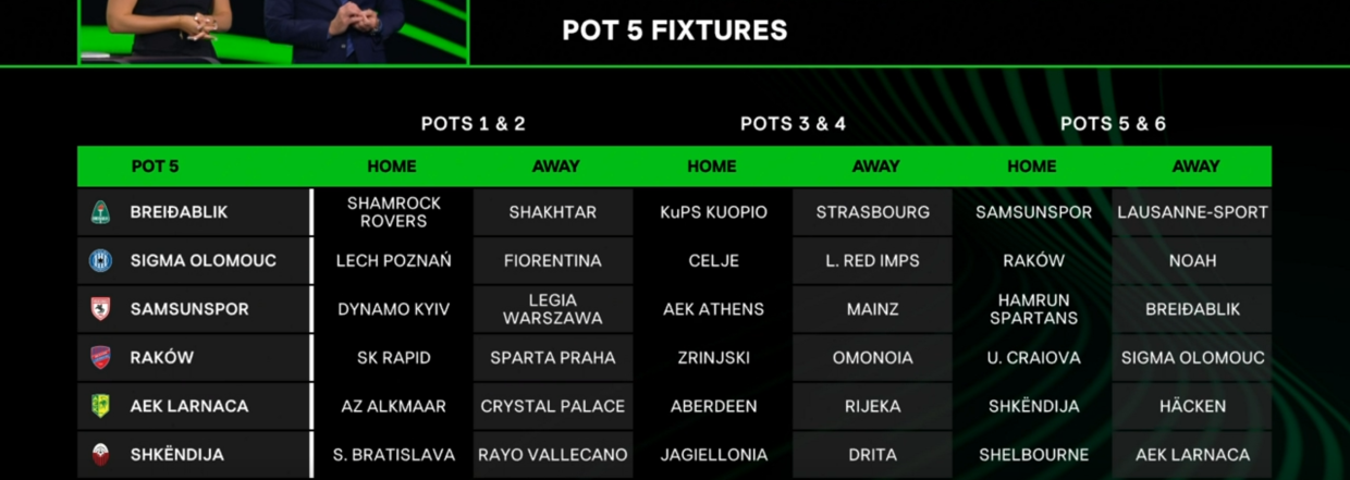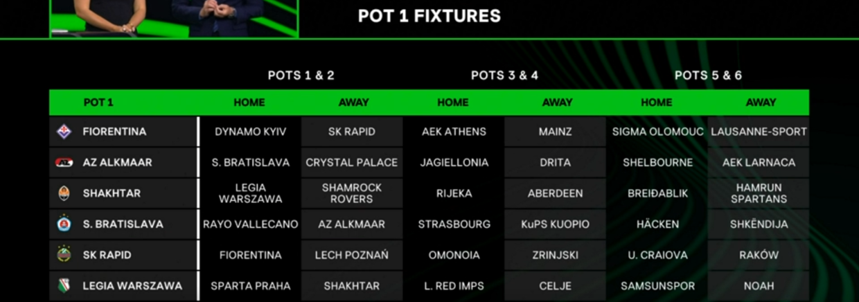 Результаты жеребьевки общего этапа Лиги Конференций УЕФА-2024/25.