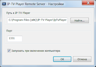 Устанавливаем IP-TV Player Remote Server на компьютер. После установки и запуска появится окошко с настройками: